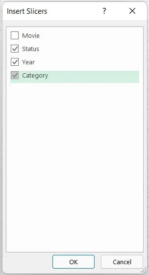 Einfügen-Tab im Menüband und klicken Sie aufSlicer. - Aktivieren Sie im Dialogfeld "Slicer einfügen" die Kontrollkästchen für die Felder, nach denen Sie filtern möchten, z.B. 'Jahr' oder 'Status'.